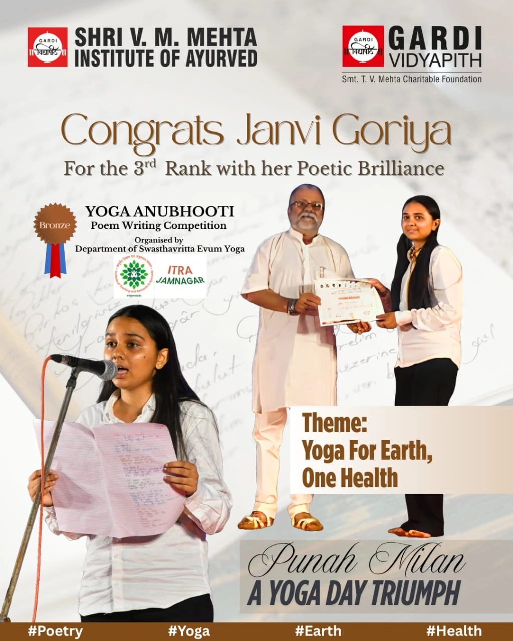 Here, students are encouraged to explore knowledge, innovate, and grow both academically and personally. I wish all our students success in their studies, research, and future careers, and hope they carry forward the values and legacy of Ayurveda with pride.