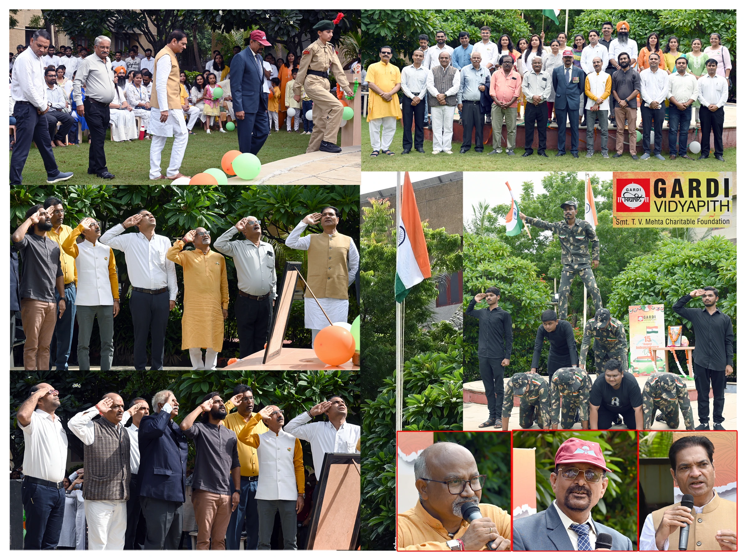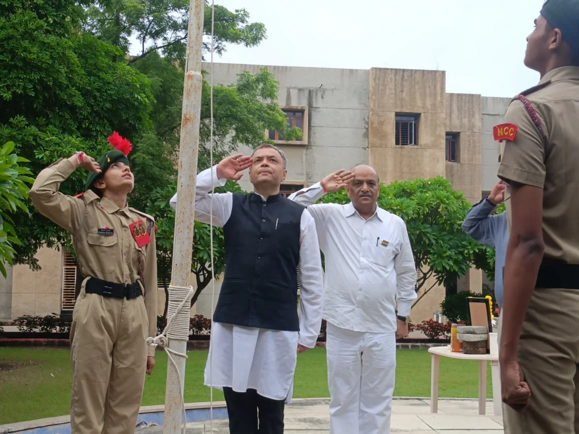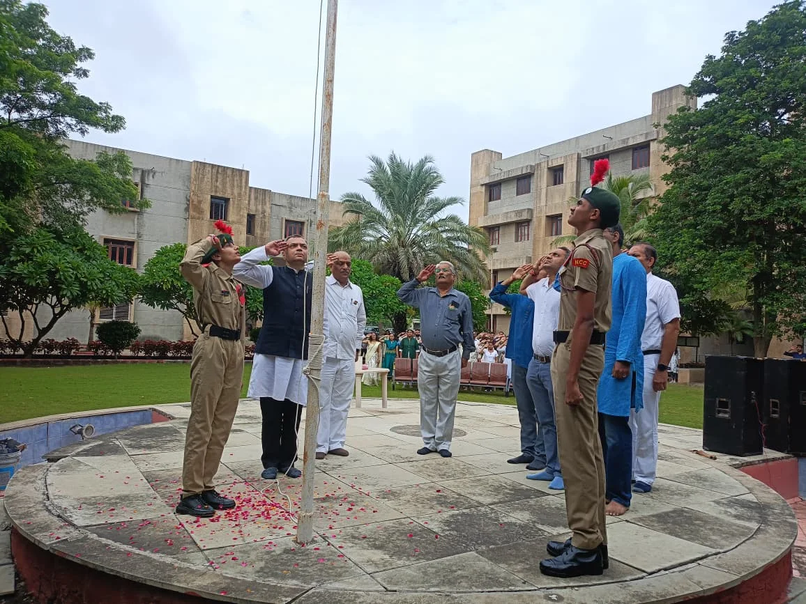 On 15th August 2025, B.H. Gardi College proudly celebrated the 79th Independence Day of India with great enthusiasm and patriotism. The celebration commenced at 9:30 AM with the flag hoisting ceremony by the Chief Guest, Dr. J. M. Badiyani, followed by the singing of the National Anthem, which filled the campus with a spirit of unity and pride.