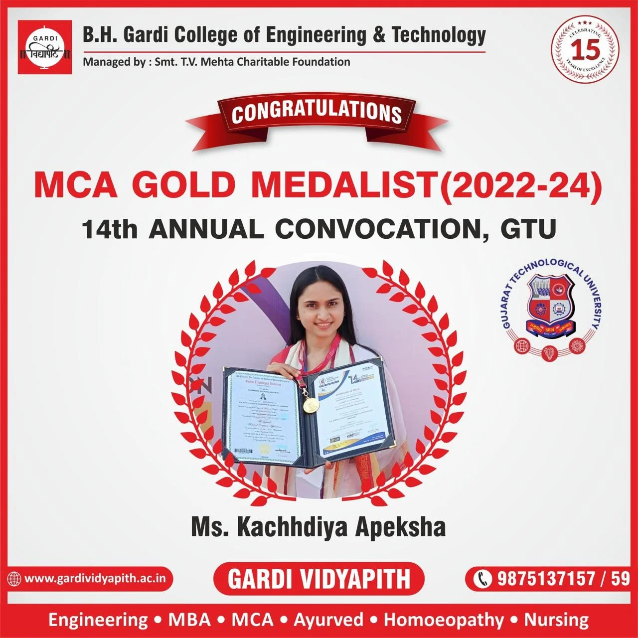 The event was organised by Smt T V Mehta Charitable Trust to celebrate 15 years of success of Gardi Vidyapith. In this event total 19 teaching staff members were awarded in three different categories